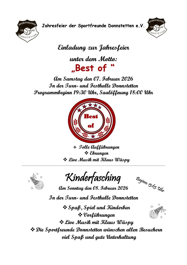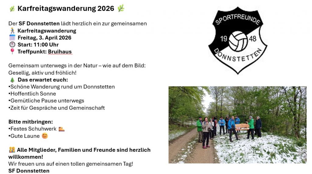 Auf zahlreiches erscheinen freuen sich die Sportfreunde Donnstetten